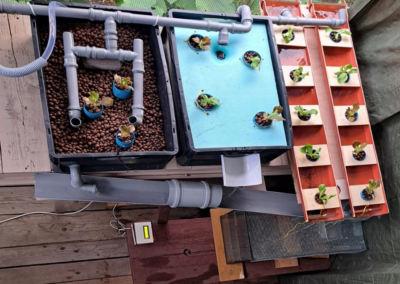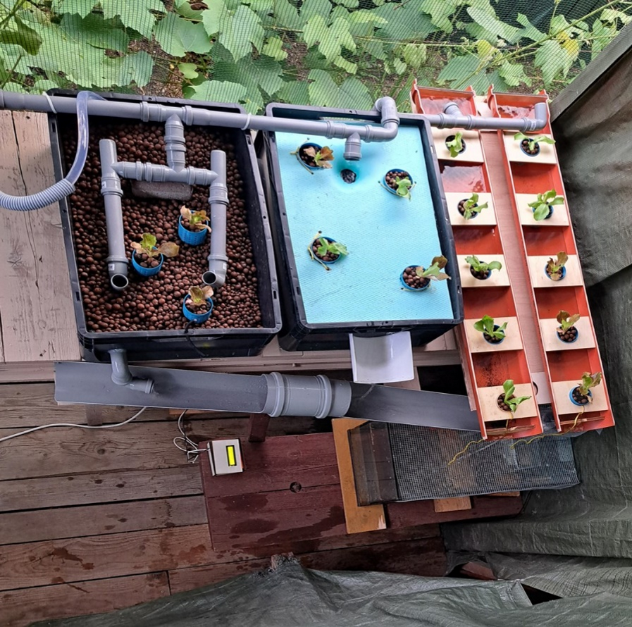 Na projektu sta sodelovala Meta Štular z Biotehniške fakultete in Aljaž Kirar s Fakultete za strojništvo. V tednu hitrih poletnih projektov sta izdelala sistem za akvaponsko pridelavo zelenjave, ki povečuje možnost samooskrbe z zelenjavo. Sestavljen je iz akvarija, biofiltra, usedalnika in več zabojev za gojenje solate, med katerimi voda neprestano kroži. Črpalka hranila, potrebna za hitro rast zelenjave, na ta način iz akvarija prečrpa do rastlin, ribe pa dobivajo prečiščeno vodo. Dodala sta še v Peskovniku narejen digitalni termometer za spremljanje temperature vode, ki je eden izmed pomembnejših parametrov za učinkovito delovanje sistema.